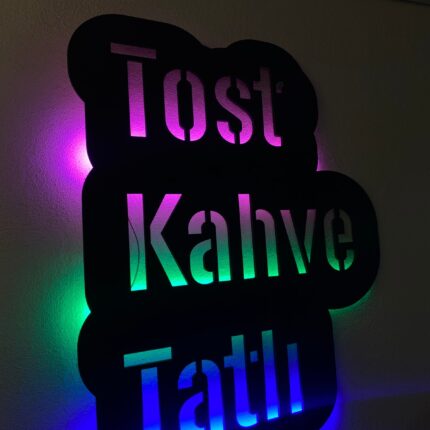 Tost Kahve Tatlı LED’li Ahşap Tabela | Işıklı Kafe Dekoru – Pembe / 60 x 50