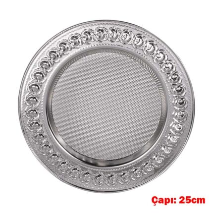 Gül Desenli Gümüş Metal Tabak – 25cm
