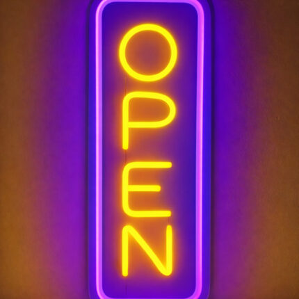 Open Yazılı 30×15 Neon Tabela – Mor / 30 x 15