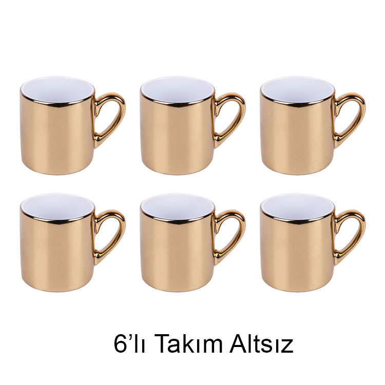 Altsız Promosyon Porselen Türk Kahve Fincanı – 6’lı Aynalı Altın