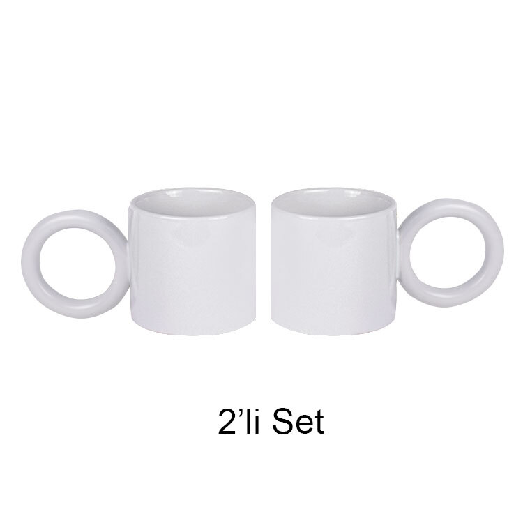 Beyaz Halka Kulplu Porselen Kupa Bardak – 2’li set