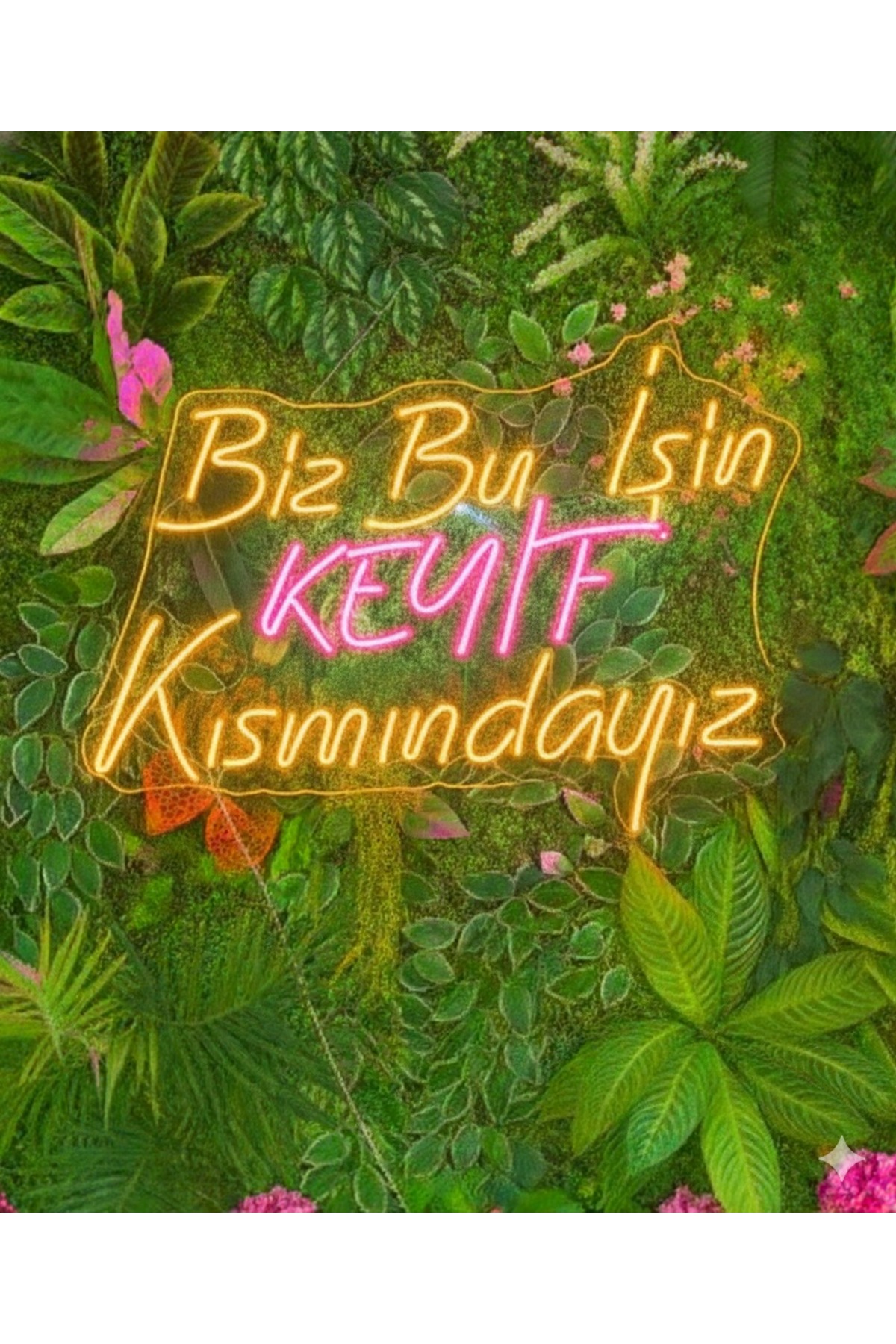 Biz Bu İşin Keyif Kısmındayız Yazılı Pembe Neon LED Işıklı Duvar Dekoru ile duvarına/alanına “tam aradığım dokunuş” etkisi ver. Minimal ama dikkat çeken tasarımı sayesinde fotoğraflarda güzel görünür, ortamın havasını değiştirir.