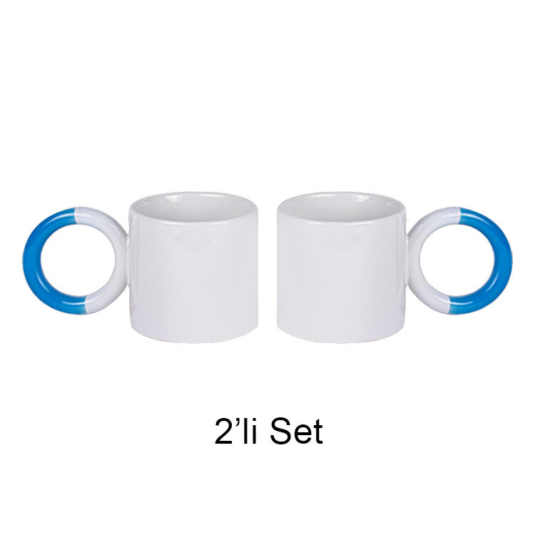 Mavi Halka Kulplu Porselen Kupa Bardak – 2’li set