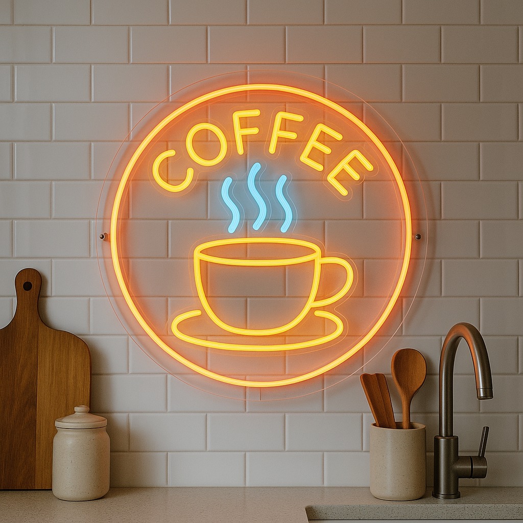 40*40 cm ebatlarında neon tablo. 3mm şeffaf pleksi üzerine neon led ile logonuz tasarlanılabilir.