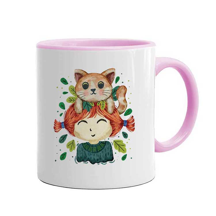 Porselen İçi ve Kulpu Pembe Kupa Bardak