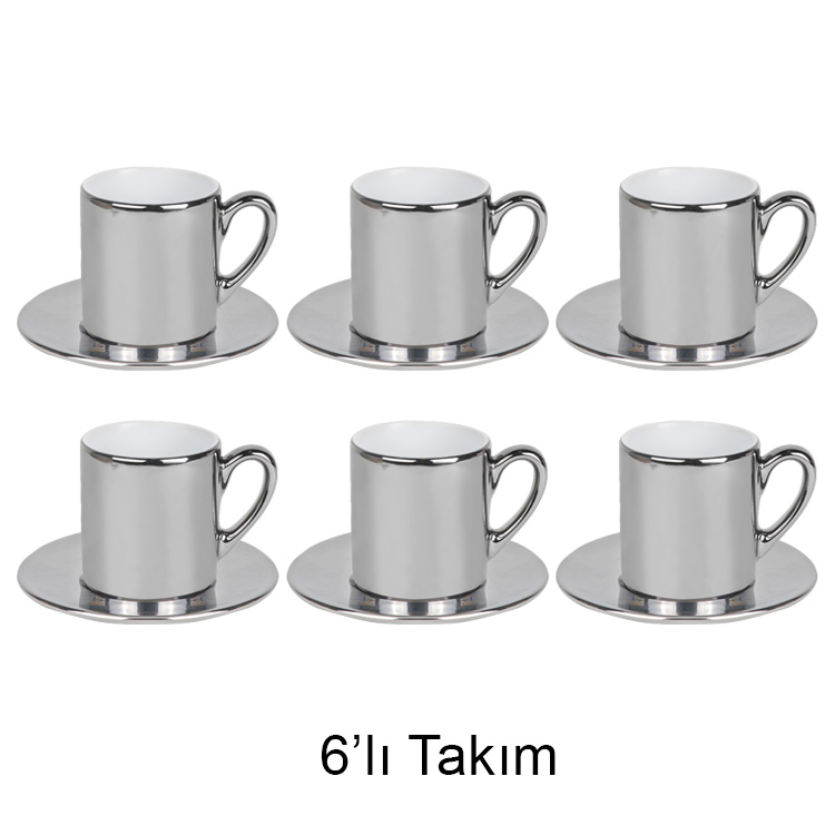 Porselen Türk Kahvesi Fincanı – 6’lı Aynalı Gümüş